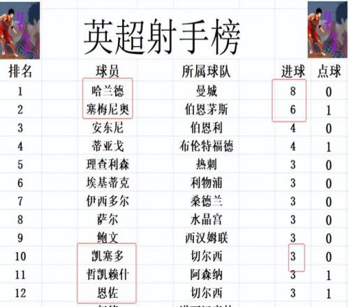 射手榜方面,哈兰德8球领跑,塞梅尼奥6球位列第2,安东尼和蒂亚戈4球并列第3。凯塞多今天打入一球后,追上恩佐,萨尔,埃基蒂克,理查利森等人3球刚好挤入前十。