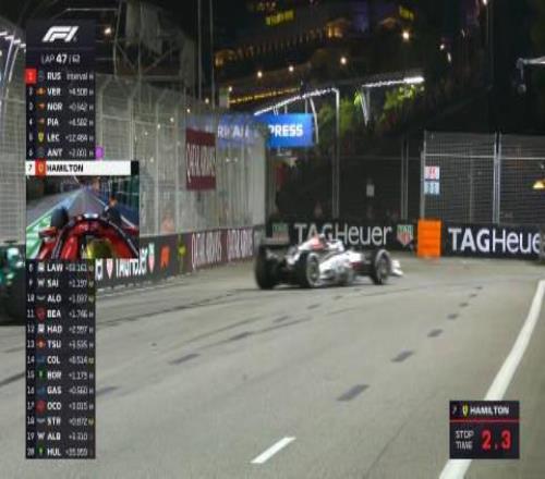 F1新加坡站正赛:拉塞尔杆位夺冠,维斯塔潘亚军,迈凯伦三四