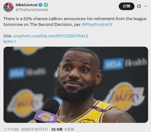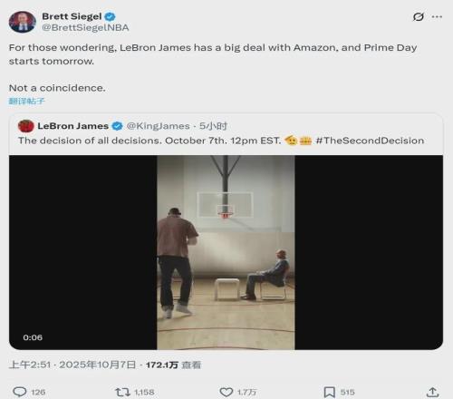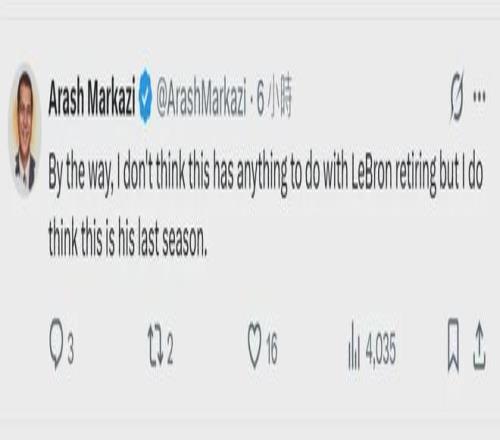 篮君也不知道这个比率是怎么算出来的。 不过Clutch Points的记者Brett Siegel给了另一种说法:“詹姆斯跟亚马逊签了一份大合同,Prime会员日则在明天开始,这绝非偶然。” 此外,湖人跟队记者Arash Markazi表示,他始终认为这次预告与退役无关,“但我确实觉得这会是詹姆斯的最后一个赛季”。 另一个湖人跟队记者Daniel Starkand则表示,他个人倾向于是商业合作,“毕竟这种套路我们见过太多了,我觉得勒布朗自己也明白这点,他的商业伙伴更清楚,所以我认为他多少有点在和我们玩心理游戏,最终这很可能是个品牌合作(很多人猜测是亚马逊)”。 无论如何,詹姆斯的这件事都已经引发了轰动,他的合同也似乎在说明这一点。 目前詹姆斯跟湖人的合同还剩下最后一年5262万美元,在2026年夏天到期,他也没有在今夏跟湖人完成续约。 湖人总经理佩林卡在9月底的新闻发布会上也表态,称球队会给予詹姆斯和他家庭最大的尊重,“让他自己决定还想打多久,继续书写自己的故事”。 因此,詹姆斯目前的命运应该是完全掌握在自己手里了。 挺突然的,但是尊重詹姆斯的决定! |