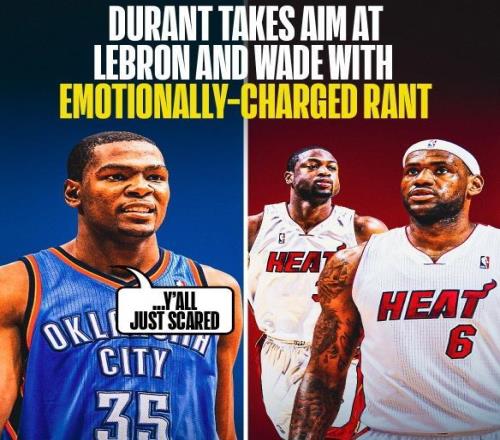 杜兰特认为当时詹姆斯和韦德这些人恭喜哈登去火箭能大杀四方,是因为他们害怕我们(雷霆三少)即将统治NBA!(在回答问题时,杜兰特狂飙脏话,显然是对詹姆斯的行为很不满!)