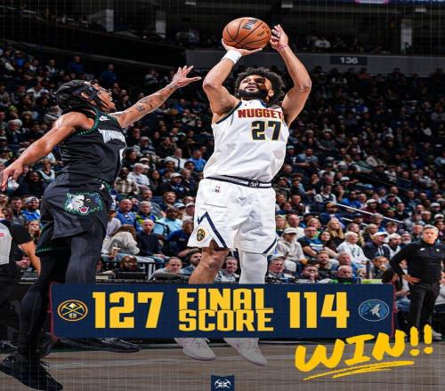 NBA常规赛继续进行,掘金奔赴客场与森林狼展开对决。安东尼爱德华兹与克拉克伤停,背靠背作战的明尼苏达面临着严峻的体能考验。丹佛在上赛季的西部半决赛抢七不敌森林狼,掘金渴望在此役完成复仇。丹佛的首发五虎依然是约基奇、穆雷、戈登、布劳恩与卡梅隆约翰逊。迪文琴佐、康利、麦克丹尼尔斯携手兰德尔、戈贝尔出任森林狼首发。约基奇与兰德尔、戈贝尔、里德3大内线的较量,是此役的最大看点。 约基奇25+19+10创NBA历史第2神迹,掘金力擒森林狼!穆雷43+6+单节23分暴走! 全场比赛回顾 首节开打,丹佛更快进入了状态,在约基奇、穆雷的带领之下,掘金实现了内外开火,并一度取得了12分的领先优势。麦克丹尼尔斯携手兰德尔率队追分,分差逐渐被蚕食。两队在场上开始对轰,首节打完,掘金以34比30领先。 穆雷持球进攻