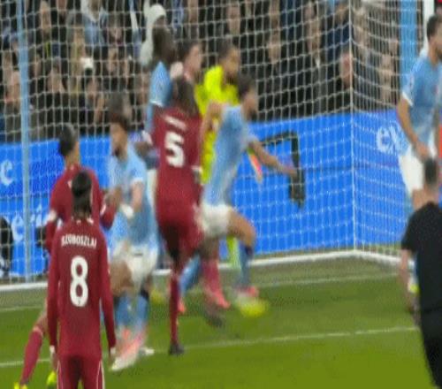 在2025-26赛季英超第11轮,利物浦客场对阵曼城。在哈兰德打破僵局之后,范戴克头球破门,但主裁判判罚罗伯逊干扰门将进球无效。