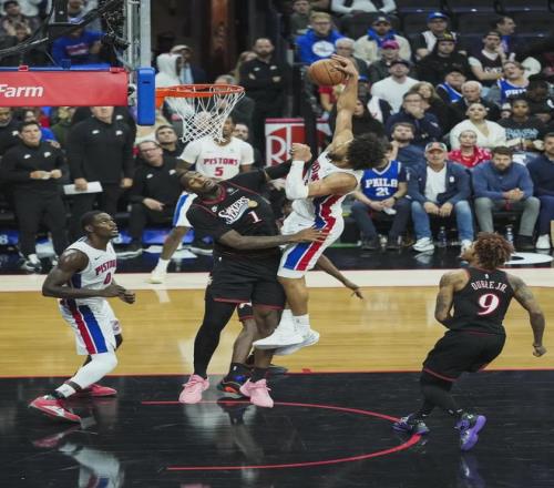 北京时间11月10日,NBA常规赛:活塞客场111-108险胜76人。末节还剩16.9秒,坎宁安后仰中距离跳投打进。随着马克西最后时刻绝平三分不中,坎宁安完成了准绝杀,活塞取得6连胜。此役过后,活塞8胜2负稳居东部第一。 2023-24赛季,活塞遭遇载入史册的28连败,最终14胜68负排名联盟倒数第一!现在这支活塞,已经彻底蜕变。四节比分如下(活塞在前):37-32、17-32、34-21、23-23。坎宁安上半场9中1仅得2分,第三节7中5狂轰17分!