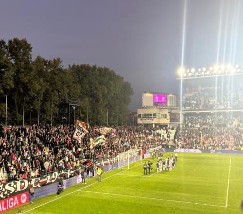 巴列卡诺主席马丁·普雷萨在当地电台的节目中对此事做出回应:“我们的主场是通过了欧足联验收并符合举办欧洲赛事标准的,梅西和C罗这样的巨星都曾使用过我们的更衣室,都没有过任何抱怨。至于毛巾这件事,我们给客队球员提供的所有毛巾都是干净的。”而最好的回应还是在场上,巴列卡诺在一度两球落后的情况下,3比2逆转击败了波兹南莱赫,算是加倍奉还了这家波兰俱乐部赛前的嘲讽。 当笔者走进闪电军团主场巴列卡斯球场时,也切身感受到了这座球场的简陋,这里领取媒体证的地点仅有一张桌子,媒体席是球迷看台上的一些座椅改建而成,整座球场是典型的老式西班牙球场风格,设施非常陈旧,容量不过一万多人。此前在回应波兹南莱赫官方账号嘲讽之时,巴列卡诺主席也略显无奈地表示:“我们也无法擅自扩建巴列卡斯球场,因为球场所有权不在俱乐部,而在市政府。”对于体量有限的闪电军团来说,没有真正属于自己的球场也制约了俱乐部发展。 迄今为止,巴列卡诺俱乐部都没有在官网开通网上购票的渠道,想要观看他们的主场比赛,唯有线下买票一条道路。巴列卡诺的主场球迷基本都是居住在巴列卡诺街区的本地死忠,他们也在对皇马一战中制造出疯狂的氛围,“主席先生记得帮我们买下波兹南莱赫。”“我们需要买更多颜色一致的毛巾。”巴列卡诺球迷们在赛前口号中不忘讽刺前几天欧协杯赛场上结下梁子的波兰俱乐部。 随着比赛正式开始,巴列卡诺主场球迷们为皇马送上嘘声的同时,不断高声唱出“巴列卡斯街区才是真正的首都!”等口号,比起享誉世界的皇马,巴列卡诺的确才是真正意义上的马德里本地俱乐部,伯纳乌球场每年吸引成千上万游客朝圣,巴列卡斯球场则只有线下购票这一个看球渠道。 维尼修斯成为巴列卡诺球迷主要的“贴脸开大”对象,皇马7号此役表现活跃,但几次单兵突破都被巴列卡诺防线化解,球迷们高喊“维尼修斯你拿的是沙滩球奖”,以此嘲讽一年前与金球擦肩而过的“熊皇”。巴列卡斯球场看台和内场之间距离很近,这也让主场球迷给客队带来的压迫感更上一个层次。而在0比0的比分被维持到终场哨响后,主场球迷们如庆祝胜利般欢呼雀跃,连续两个主场经历了欧战逆转取胜和逼平强敌皇马,巴列卡诺球迷度过了完美的一周。