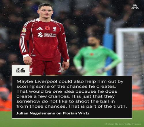 近日,德国主教练纳格尔斯曼再次批评了维尔茨的利物浦队友,他表示这位进攻组织者因为队友糟糕的终结能力而受到影响。