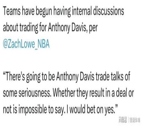 北京时间11月13日,联盟资深记者Zach Lowe的一则重磅报道打破了NBA的平静:“接下来将会出现具有一定严肃性的安东尼-戴维斯交易谈判。最终是否达成交易尚难断言,但我个人倾向于认为交易成行的可能性更大。” 这则消息迅速在联盟掀起波澜,这位曾经的总冠军核心、攻防两端的顶级内线,如今正站在职业生涯的又一个十字路口,而他的去向,或将深刻影响联盟的格局分布。