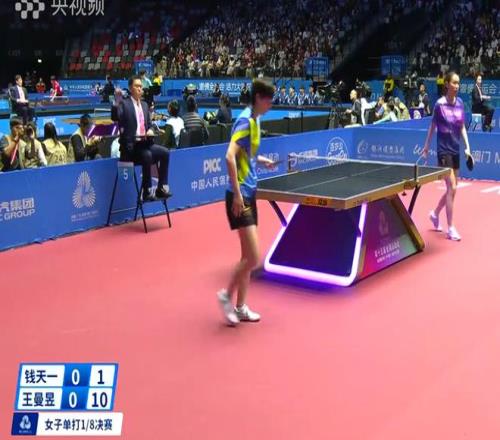11月12日,全运会乒乓球女子单打1/8决赛,王曼昱4-1(11-1、11-4、11-5、10-12、13-11)战胜钱天一,晋级八强。