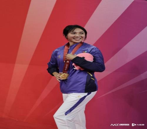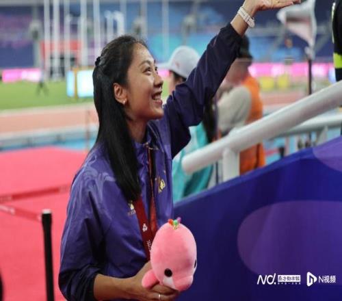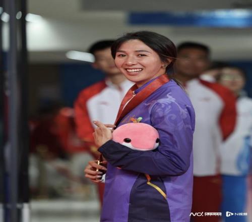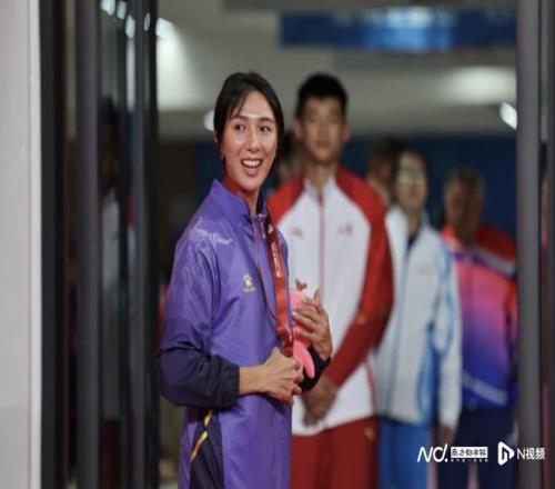 挂上十五运会田径增设小项金牌,林雨薇、葛曼棋笑靥如花