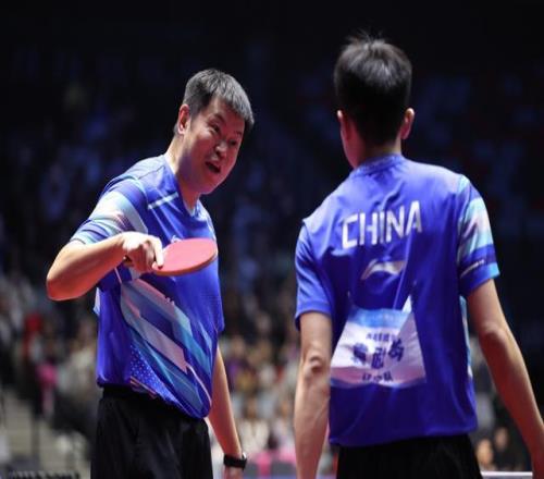 11月18日,辽宁队组合袁励岑/侯英超(左)在比赛中交流,他们在双打比赛中0比3不敌北京队组合马龙/王楚钦。 那一刻,侯英超眼中没有失败的遗憾,只有暴雨过后的平静。 当有记者问:“做解说员和运动员有何不同?”侯英超思索片刻后回答:“做解说时,你是旁观者,你对双方运动员的战术、心理会看得清,但在比赛时,你是局内人,既要想战术,又得想对手,比分胶着时还要做选择,甚至会犹豫,可能需要一两局后,才能发现对方的漏洞。” 采访时,侯英超的汗止不住地流,有的从鬓角涌出,有的沿脸颊滑下,有的悬在眉梢,随呼吸微微颤动。