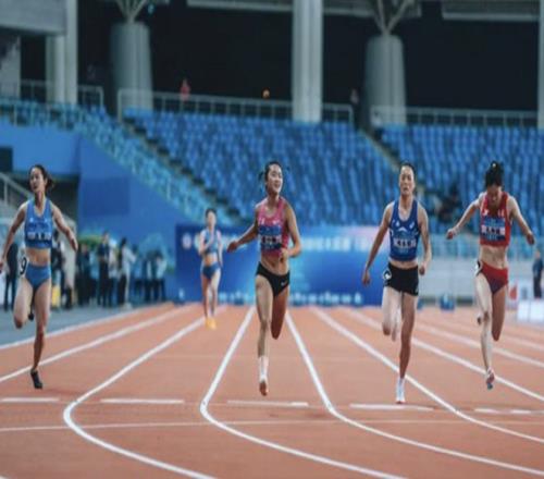 孔玲瑶身披国家队战袍站上赛场。 从紧张到呕吐,到身披国家队战袍 当第一次听到田丰说出“冲击专业赛场”的时候,孔玲瑶很犹豫。但田丰至今依旧记得,他在孔玲瑶的眼神中很快寻找到了那份对于“更快和更强”的渴望,然后这种渴望转变成了一种坚定的态度。 “她没有马上就答应,但是也没有立刻拒绝,我发现她的眼神是很坚定的,所以我知道她也想试一试,这是我俩练这么久的一种默契。” 自从和孔玲瑶开始征战全国大学生田径比赛,田丰就像她的兄长一样记下了孔玲瑶成长的每一步,甚至田丰可以比孔玲瑶更快从记忆里掏出他们第一次站上专业赛场的经历。 2023年山东济南室内大奖赛,那是孔玲瑶在专业舞台上的首秀。彼时,第一次来到满是专业运动员的赛场上,孔玲瑶在大学赛道上积累的信心都消失了。田丰告诉澎湃新闻记者一个细节,热身的时候,孔玲瑶在跑道上只敢“溜边”,主动将内侧的跑道让给其他运动员。 而那场比赛,孔玲瑶也交足了“学费”,0.434秒的起跑反应时间,成为她在短跑生涯里的最差纪录。 还没来得及好好总结,他们师徒二人又转战肇庆参加下一场比赛。而就在那场比赛的200米预赛之后,走下赛场的孔玲瑶就控制不住自己,呕吐了起来。她至今依旧记得那种被赛场的氛围和紧张感压得喘不过气来的感觉,“我以前在训练中也吐过,但在比赛中呕吐还是第一次。” 但这就是跳出舒适圈所需要付出的代价,田丰早就有所准备,“在业余组的赛场上,孔玲瑶经常是女子短跑唯一的一级选手;而在职业赛场上,一级成了最低门槛,80%以上都是比你快的,你就必须继续提高自己,才能生存下去。” 除了压力,孔玲瑶其实也收获了很多全新的体验。2024年的全国田径大奖赛西安站,孔玲瑶第一次和葛曼棋同场竞技,彼时,她甚至不敢和身边的偶像搭话,“我以前都是在电视上看葛曼棋,现在我俩站在一块了。”