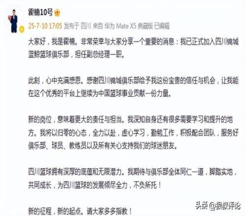 四川男篮副总经理霍楠更新社媒,不仅打破自己已经离开四川男篮俱乐部的传闻,也对网络上涉及四川男篮深陷欠薪等事宜做出点评。 霍楠表示:“作为球队一员,我和大家一样,心里只有几个词,可惜,心痛,不愿看到。 可惜的是四川男篮这么多年的风风雨雨,也曾拿到过联赛的冠军,怎么会走到了今天。 心痛的是我们球员,教练,工作人员,他们付出了那么多。 最不愿看到的是CBA版图上失去我们这一支顽强的川军。欠薪的焦虑,准入的困境,每一件都像冰冷的石头,搁在每一个关心川军的人心里。 我们心疼球员付出,惋惜球队的境遇,这种种情绪都是真真切切,但我相信球队还是有希望,就像锦江的水,什么时候因为眼前的石头就停止奔流了,现在的沉默不是放弃,而是为了下一次更响亮的呐喊,在积蓄力量。 我们是川军,顶过汶川地震,扛过无数硬仗的硬骨头,我们的基因里就是雄起两个字,我现在最大快乐和四川球迷一样,憋着一股劲,相信俱乐部能渡过危机,相信我们一定能重返CBA赛场。” 今年夏天,霍楠入职四川男篮担任副总经理的职务,主要负责选秀等相关事宜。 此前四川男篮深陷财务压力的风波当中,曾有媒体报道霍楠早与四川男篮分道扬镳,如今更是社媒发声也是一种回应,他目前仍与四川男篮同一阵线。 |
