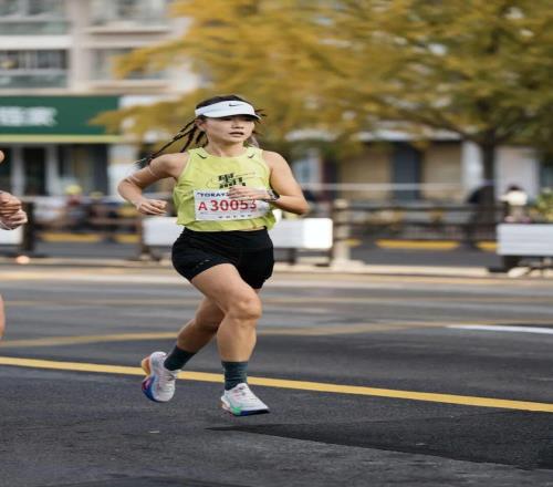 继今年东京马拉松跑到2:50:10后,路野双修的山楂(高礼立)带着一头彩色的辫子在上马再次迎来PB—2小时48分47秒,1分23秒的提升,却远远不止于数字。 在实现下半年的PB前,山楂在夏训期经历了两次波折。 一次是7月份崇礼的一场比赛,她崴了脚。虽然当时做了一些处理后就开始继续训练,但是未好全的伤也至此埋下了隐患;直到上马前近一个半月,因为跑量的增加,之前的伤病于10月25日引发了趾骨伤痛,严重到无法行走和训练。 强制休息两周,以游泳和力量训练作为交叉,并于两周后尽力在减少跑量的同时将训练最大效率化。山楂直到上马前三周,才把状态慢慢调整回来。“上马于我们黑马的成员来说是一场很重要的比赛,所以希望快点好起来。” 团队的鼓励让受伤期也曾面临自我怀疑的山楂有了信心,所以站上上马的赛道,她将目标定在2小时49分45秒,也将分段成绩写在手背上。她基本也是按同样的配速规划推进。