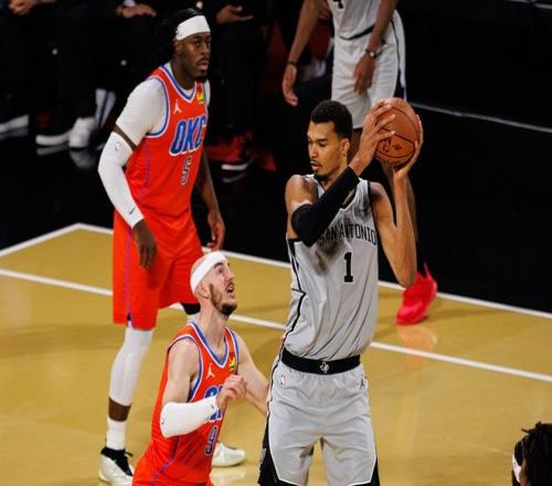 这个最华丽的泡沫被戳破的过程,要分两个部分说。第一部分:马刺三场胜利,赢法各不相同。第一场文班亚马统治第四节;第二场奇兵凯尔登约翰逊站出来,在文班亚马和福克斯身边不断发炮;第三场则是马刺后场三杰:福克斯+哈珀+卡斯尔轮流爆发,雷霆补了东墙漏西墙!马刺对待雷霆进攻策略很简单,第一是减少自己失误,不让雷霆抓反击机会。而阵地战中,马刺就放卡鲁索和多特两个空间累赘点,其他人突不进去,这两人又投不进去,阵地战雷霆哑火,只剩下罚球维持局面。而文班亚马的属性价值,在进攻端也很重要。