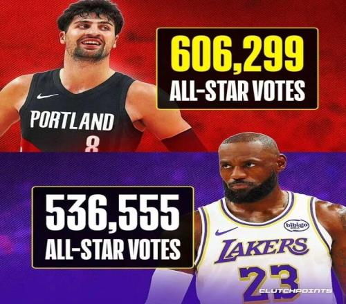 西部榜单中,另一个令人意外的结果是詹姆斯的排名——他仅获得536555票,位列西部第九,这也是十多年来他首次在全明星首轮投票中跌至如此位次。 更引人注目的是,开拓者前锋阿夫迪亚以606299票高居西部第七,比詹姆斯多出近7万票。对此,美媒ClutchPoints不禁发文感慨:“二十年来,NBA始终遵循着一条不成文的规则,除了死亡和纳税,勒布朗·詹姆斯稳坐全明星票王宝座。看着他落后于一个首次冲击全明星的球员近七万票?这感觉像是系统故障。”