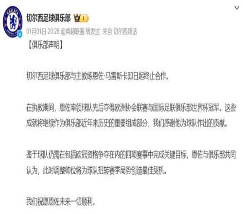 先来看看切尔西的神操作,1月1日晚上的一则消息,令多少球迷会心一笑。切尔西足球俱乐部官方宣布,与主教练马雷斯卡终止合作。 切尔西:主打一个辞旧迎新,别人新年换装备,咱新年换主帅,效率这块从没输过!