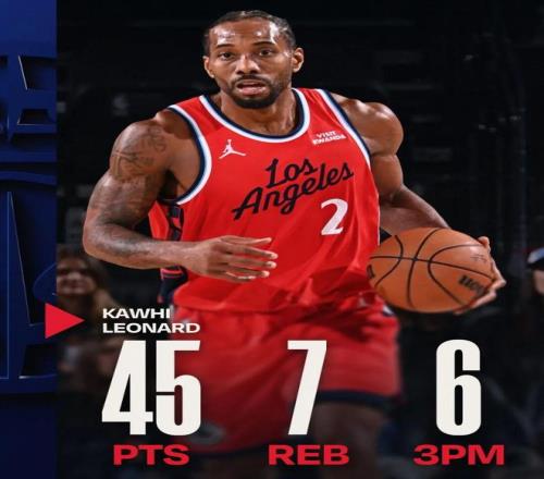 单场45分对于很多顶级得分手可能不算什么,但是对于伦纳德还是比较少见的,算上本场比赛,他职业生涯常规赛一共只拿到过11次40+,其中45+只有3次。 值得一提的是,其中之一,也是伦纳德单场最高分就发生在不到一周前,当时快船112-99大胜活塞,伦纳德全场26中17,三分10中5,罚球17中16,拿下55分11篮板2助攻5抢断3盖帽。