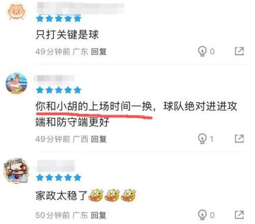 本轮广东以5分优势击败深圳的比赛中,陈家政在8分钟的上场时间里,三分球2中2,拿到6分。而这两个三分球,都是那种大心脏的关键三分。作为对比,本场比赛胡明轩打了25分钟,只得到3分(5中1)。有球迷表示:“把胡明轩的时间给陈家政吃了吧。”