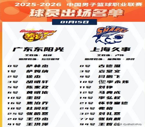 郭士强现场观赛!广东vs上海焦点战12人:徐杰胡明轩张镇麟领衔