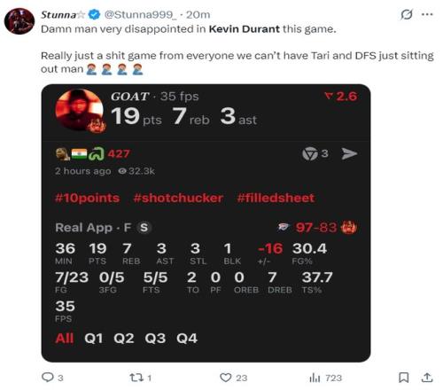 23中7吞耻辱一战!KD创赛季第二低命中率休媒高呼需要伊森DFS