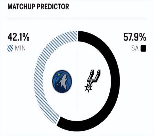 两队本赛季已经交手2次,森林狼均获得最终的胜利,而两队近五次交锋,森林狼已对马刺取得五连胜,优势巨大。赛前,美媒ESPN对本场比赛进行了胜率预测,马刺队胜率为57.9% ,森林狼胜率则仅有42.1% ,略占劣势。