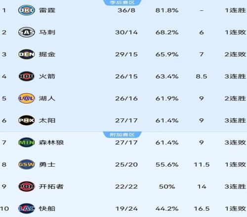 随着主场111-106险胜马刺,火箭豪取三连胜,目前以26胜15负排名西部第四,湖人则以26胜16负紧随其后。 至于同为流量大队可没有了巴特勒的勇士,现在以25胜20负继续位列西部第八,本赛季最主要任务变成了保住附加赛名额。