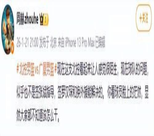 显然,人家已经看懂了,北控队的迷茫,已经摆在了明面上了。但是,张庆鹏却解决不了,即便不断从外部引人,可惜都白搭,或许,只有张庆鹏下课,才是最好的解题思路吧。