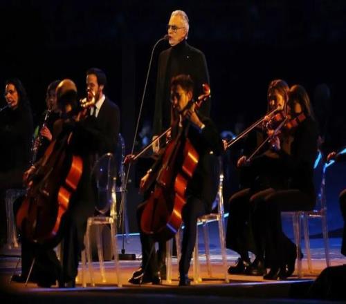 意大利盲人歌唱家波切利带来歌剧《图兰朵》中最著名的咏叹调《今夜无人入睡》,全场一同唱响,震撼人心。