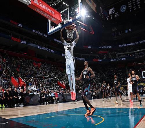 本场比赛中,马刺的先发锋线大将朱利安-尚帕尼(Julian Champagnie)的表现又一次令人刮目相看。尚帕尼全场出场36分26秒,投篮12中6,三分线外8中5,得到了17分6篮板1助攻1抢断2盖帽的数据,还有1次失误和3次犯规,正负值为+9。尚帕尼在进攻端的效率依然非常稳定,他也是将自己在外线投篮方面的表现完全发挥了出来,他也是抓住了不多的机会得到了不少分数,在进攻端为球队提供了不少的支持。尚帕尼在防守端的表现同样是可圈可点的,他也是将自己出色的个人防守能力完全发挥了出来。尚帕尼在本场比赛中可以说是展现出了优秀3D类型锋线球员的水准,在攻防两端都起到了关键的作用,这也为球队的胜利做出了巨大的贡献。