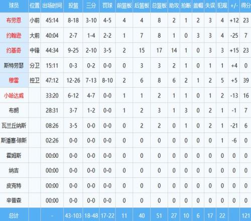 约基奇同样效率不高,投篮25中9,以36%命中率贡献23分17板14助三双数据。