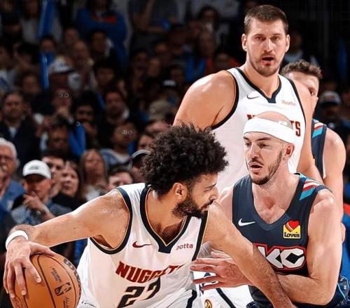 比赛开始雷霆使用了双塔霍姆格伦和哈滕,就是要限制约基奇,雷霆的针对性防守有一定的效果,约基奇上半场11投仅3中只有11分,但是约基奇的能力全面,还抢到了9个篮板球和送出4次助攻,布劳恩和哈达威成为奇兵,上半场分别拿到了14分和12分,掘金59-50带着9分优势进入中场休息。第三节回来,亚历山大虽然10投仅4中,但是获得了7次罚篮,单节拿到了14分,还送出了5次助攻,雷霆全员的状态回暖。