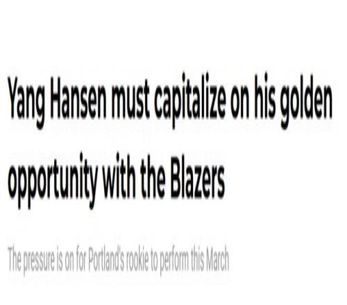 北京时间3月1日,开拓者93-109不敌黄蜂,目前29胜32负,排名西部第9。杨瀚森只获得最后2分15秒的垃圾时间,2中1得到2分1篮板。虽然他的上场时间依然很少,但波特兰媒体Rip City Project表示,杨瀚森得抓住3月的黄金机会。以下是文章内容——