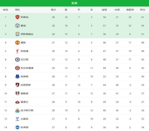 随着多场比赛结束,英超格局出现三条清晰主线: 第一,曼城继续压迫阿森纳,争冠进入白热化阶段。 第二,利物浦连胜逼近前四,争四集团再度收紧。 第三,中游混战愈演愈烈,纽卡与埃弗顿的直接对话成为分水岭。 |