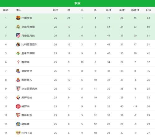 41大胜!10绝杀!西甲最新积分榜:巴萨甩开皇马,马竞反超黄潜