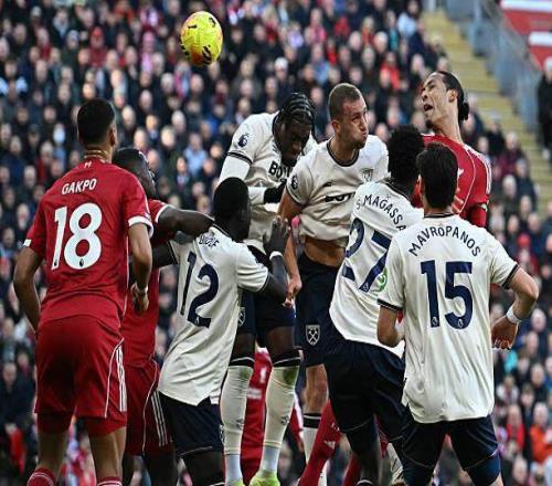 但就在本场比赛之前,利物浦还是英超货真价实的定位球困难户。截至2025年末,半个赛季红军各条战线定位球失球高达12个,进球反而只有3个,本场逆势雄起,诱因或许是去年倒数第二天,炒掉了定位球教练阿隆·布里格斯,原以个人发展教练入职的后者,兼项实在力不从心,尽管斯洛特言及人事调整时,坚持表示不能完全甩锅布里格斯,但分析师出身的继任者刘易斯·马奥尼上任以来,红军摇身一变为定位球产出大户,14场比赛以来,定位球已经斩获11次破门,防守端加上本场,也只丢3个而已。 4.5亿镑不好使,久违的肌肉记忆更管用?但克洛普时代的老传统,也是喜闻乐见的买一赠一——角球固然砸得对手眼冒金星,但防守端利物浦还是该送则送。上半时直面阳光的阿利松,就一脚解围送到了鲍恩脚下,而整个下半时,利物浦满是“报恩”节奏。绍切克门前飞身抢点时,防线全部落位的红军人随球动,但既没观察远端传中的迪乌夫,也忽略了后插上的捷克铁腰;至于那个定位球丢球,则几乎是上半时第3球的翻版,卡斯特利亚诺斯的后点处理,比埃基蒂克更加轻巧。