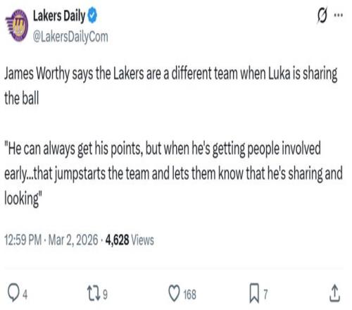 相比于一如既往无解的进攻表现之外,东契奇更好平衡个人进攻与团队配合更加值得称赞。 赛后湖人名宿沃西也对此称赞:“他有能力随时得分,但当他早早开始分享球时,全队都会被激活,湖人会成为另外一支球队,他是湖人的未来,这毋庸置疑,他曾杀入过总决赛,他是一名领袖,相信随着经验的积累他会变得更加出色。”