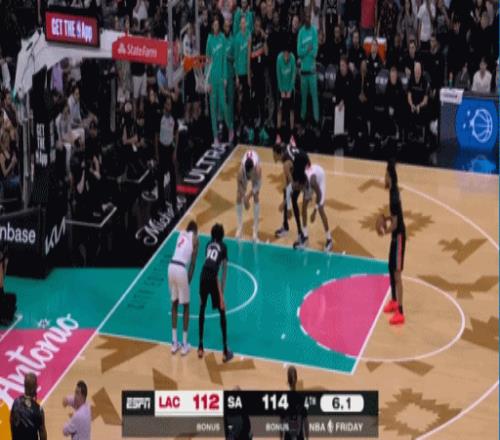 快船真的不配赢啊 第四节最后关键16秒,落后1分的快船手握最后一攻,巴图姆边线发球传给了大洛,大洛鬼使神差又回传给了巴图姆,然而,彼时巴图姆还站在界外…… 再看一次,真的挺让人无语的。 气得阿卢立马就换下了巴图姆。 但是啊,马刺也是给足了机会,随后4罚仅一中,但是快船也是不中用,两个关键篮板都没抢到。 尚帕尼两罚不中,文班点走篮板 卡斯尔第二罚不中,自己抢到了篮板