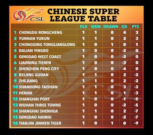 中超第1轮,负分的球队北京国安、浙江队、山东泰山、河南队、上海申花收获开门红,全取3分,不过在积分榜上,他们依旧是负分。《太阳报》晒出积分榜,还给出点评:这是诡异的足球联赛积分榜。 英国球迷对中超不熟悉,但有些(前)中超教练、球员,曾在英超踢过球。《太阳报》重点介绍3人:李铁、蒋光太、李可。
