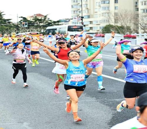 作为一名跑圈里小有名气的自媒体内容创作者,胡馨妍一直在分享自己的跑步故事,也在鼓励更多女性参与运动。 够美、够飒、够快 当来自浙江的精英跑者潘红第一个冲过终点,现场响起了巨大的欢呼声,在志愿者为她挂上象征着冠军的一号牌之后,她看了看手表,露出了自信的微笑。 1小时12分52秒,这个成绩放在国内女子精英跑者的整体排名来看,或许不算顶尖,但已经足够帮她刷新上海女子半马自2019年办赛至今的最好赛道成绩。 “我第一次参加这场比赛是2021年,上次没拿到冠军有些遗憾。时隔5年,我在能力上有所提高,也成了更好的自己。重新回到这场比赛拿了冠军,我很开心。”潘红赛后坦言,她感觉这场赛事和自己都在变得更好。 “我记得当时的比赛是5月份,现在放到了3月份,天气更舒服,赛道也优化了,补给也变得更好,参与赛事的人也更多,我能感受到更多的力量。” 美丽,一直是上海女子半马最重要的标签之一,从赛前劲歌热舞的热身环节开始到赛后包括现场歌舞、美妆美食以及女性市集在内和春日游园一样的休息区,这条21.0975公里的赛道上处处都能被轻易发现美丽的元素。 不过,从7年前的第一次鸣枪至今,一届又一届的女性参赛者在这条道上留下了太多美丽之外的跑步故事,那些故事代表着力量、自由和潇洒。 作为一名在跑圈内小有名气的自媒体内容创作者,胡馨妍今年是第二次站在上海女子半马的跑道上,与去年相比,除了完赛成绩上的进步,她还成为了一名世界大满贯赛事的“七星跑者”。这次,她就穿着纽约马拉松的参赛背心,精心打扮了一番然后重回上海女子半马,就如她所说,“专属于女子的比赛就是很美丽,赛道上都是美女、都是小香风”,但时尚美丽的造型之下都藏着突破自我的野心。