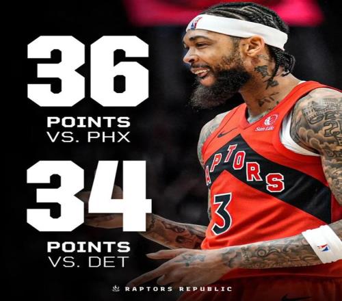 连续两场比赛,英格拉姆分别拿下36分和34分,对于很多超级得分手可能不算什么,但是对于本赛季的英格拉姆还是比较少见的。 这仅仅是他加盟猛龙之后第二次连续两场30+,其中36分还是猛龙生涯的第二高分(最高分是本赛季初的37分)。