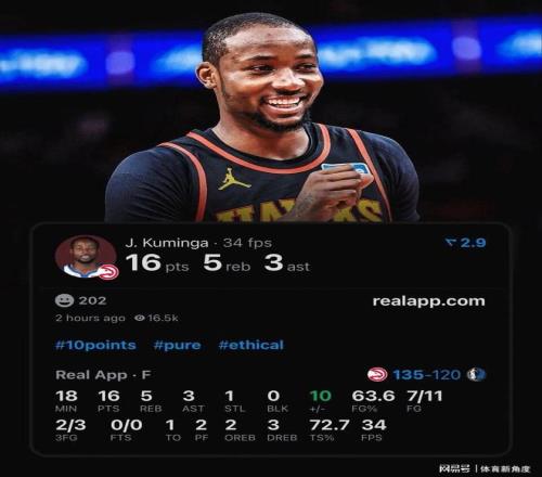 就说今天打独行侠这场,库明加替补登场,才打了18分钟,就11投7中,3分球3投2中,轻轻松松拿到16分5板3助1断,这效率,高得都快冲破天际啦!,对了,对面那个状元弗拉格,首发打了33分钟,15投才6中,3分球3投全丢,拿了17分6板5助,还送了6个失误,外加2断2帽。咱这库明加,那妥妥的状元水平啊,效率比状元还高那么一丢丢呢!