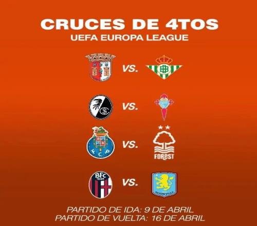 其中,阿斯顿维拉两回合双杀里尔,展现强势;博洛尼亚则凭借加时绝杀,将罗马挡在八强门外,爆出本轮最大冷门。里昂则在客场不敌塞尔塔,遗憾止步。 1/4决赛对阵随即揭晓,赛程安排如下: 上半区 布拉加 vs 贝蒂斯 弗赖堡 vs 塞尔塔 下半区 波尔图 vs 诺丁汉森林 博洛尼亚 vs 阿斯顿维拉