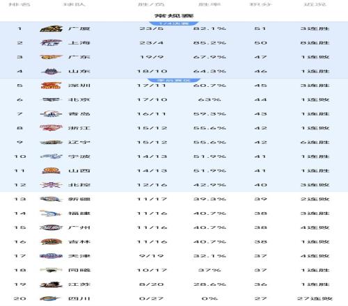 CBA积分榜一夜大变!随着广东遭绝杀山东+深圳大胜最新排名如下