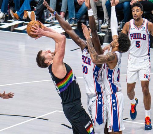 但有两个问题,第一,本赛季掘金前70场比赛,胜率刚刚到6成,这和前几个赛季相差很大,谁的问题?第二,为什么约基奇逐渐跌出MVP榜单前三竞争?再看两组数据,自从1月底打快船复出后,约基奇仿佛换了个人,2月份和3月份,他出战的比赛,掘金整体战绩9胜12负!如果扩大到本赛季,约基奇出战的比赛,球队32胜22负,胜率59.2%;他缺席的比赛,球队10胜6负,球队胜率62.5%!要注意,本赛季约基奇在场时,球队净效率值+10.3;不在场时,球队净效率值-3.9;为什么+10.3的效率值,胜率不到6成。