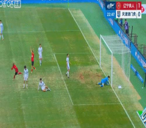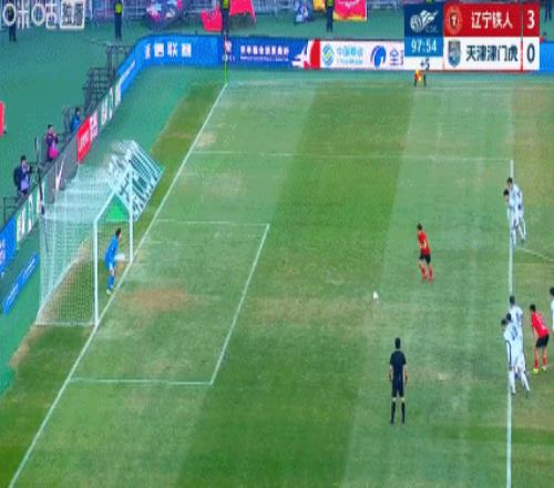 伤停补时进行到第90+8分钟,王献钧禁区内拉拽了田玉达,吃到红点套餐,邦本宜裕主罚点球,打出一记精彩的勺子点球破门,辽宁铁人将比分锁定为3-0!