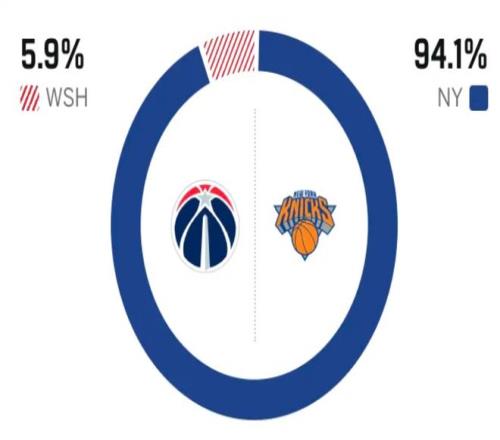 这是两队本赛季的第三次交锋,前两次交手,尼克斯两战全胜,场均净胜分高达24分。 赛前,美媒ESPN对本场比赛进行了胜率预测,奇才队胜率仅有可怜的5.9% ,尼克斯胜率则高达94.1% , 这差距真是悬殊。