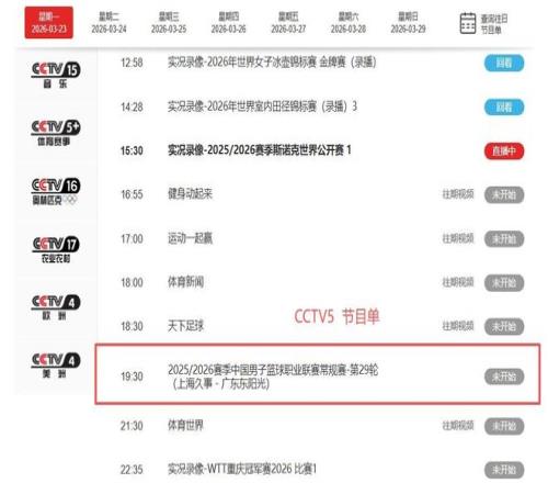 3月23日晚,CBA多场常规赛同步打响,央视最初公布的直播名单中,上海vs广东并非唯一焦点。 然而开赛前数小时,官方火速官宣:CCTV5频道取消既有编排,于黄金时段19:30整准时切入沪粤大战实况,规格之高、重视之深,跃然荧屏。