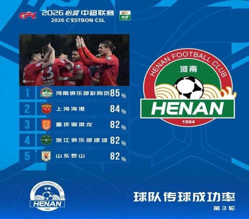 “我们的外援必须要比现在做的更多。我对失利负全责。每一场胜利是属于球队,每一场输球都是我的责任。这是我的足球哲学。”——米兰-里斯蒂奇 中超三轮战罢,河南队2胜1平,拿到7分之后,填满了-6分的坑,积1分,在积分榜排名第9。3月23日,中超联赛第3轮传球成功率榜单出炉,河南队以85%高居榜首,力压上海海港、重庆铜梁龙、浙江队和山东泰山。这样的表现,哪里像一支保级队的表现?